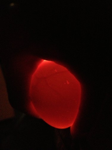 I didn’t take a picture of this one because my light is not as awesome as most people’s, but I did see the dark mass (chick) and the air pocket at the top of the egg, and as I watched the mass I could see the chick’s breathing movement, and even if I couldn’t I still kept it because I am a novice and always root for the underdogs :).
