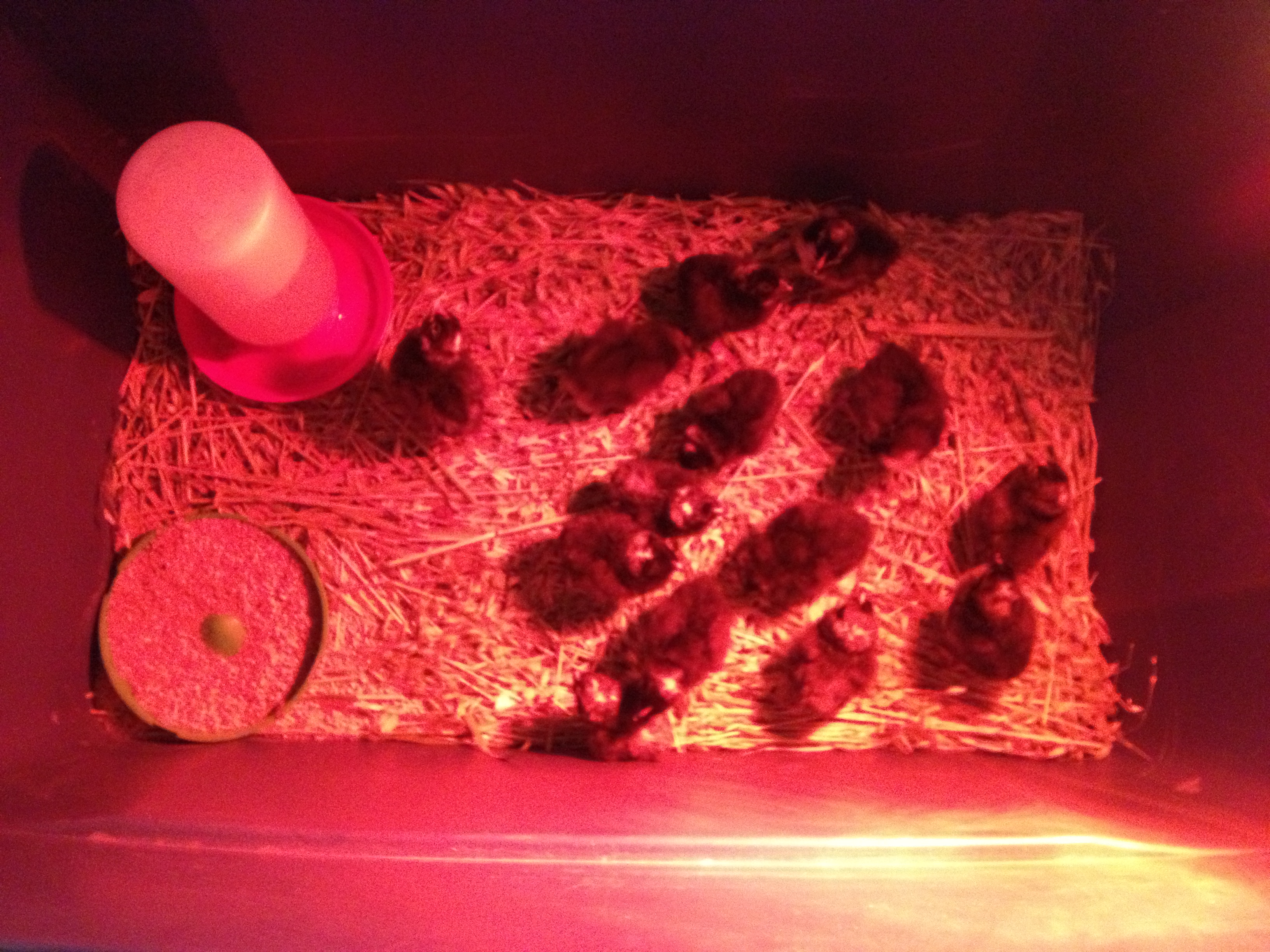 Once the chicks were dry and walking around decently (after 12 hours or so), I placed them in their brooder pen with some Purina Start & Grow Medicated grain, and some water with pebbles in it so the new chicks wouldn’t drowned. Apparently, they feel the need to throw themselves in water soon after hatching, if it is available. I also removed the cracked shells once the chicks were out. Be careful doing this as some chicks can still be attached to their eggs, reminds me of an umbilical cord. On some that had carried it around a while and couldn’t seem to shake it, I just gently pulled it off in the center of the cord. This way I didn’t pull it from the chick, but it could walk around without having a big ole’ trunk 🙂