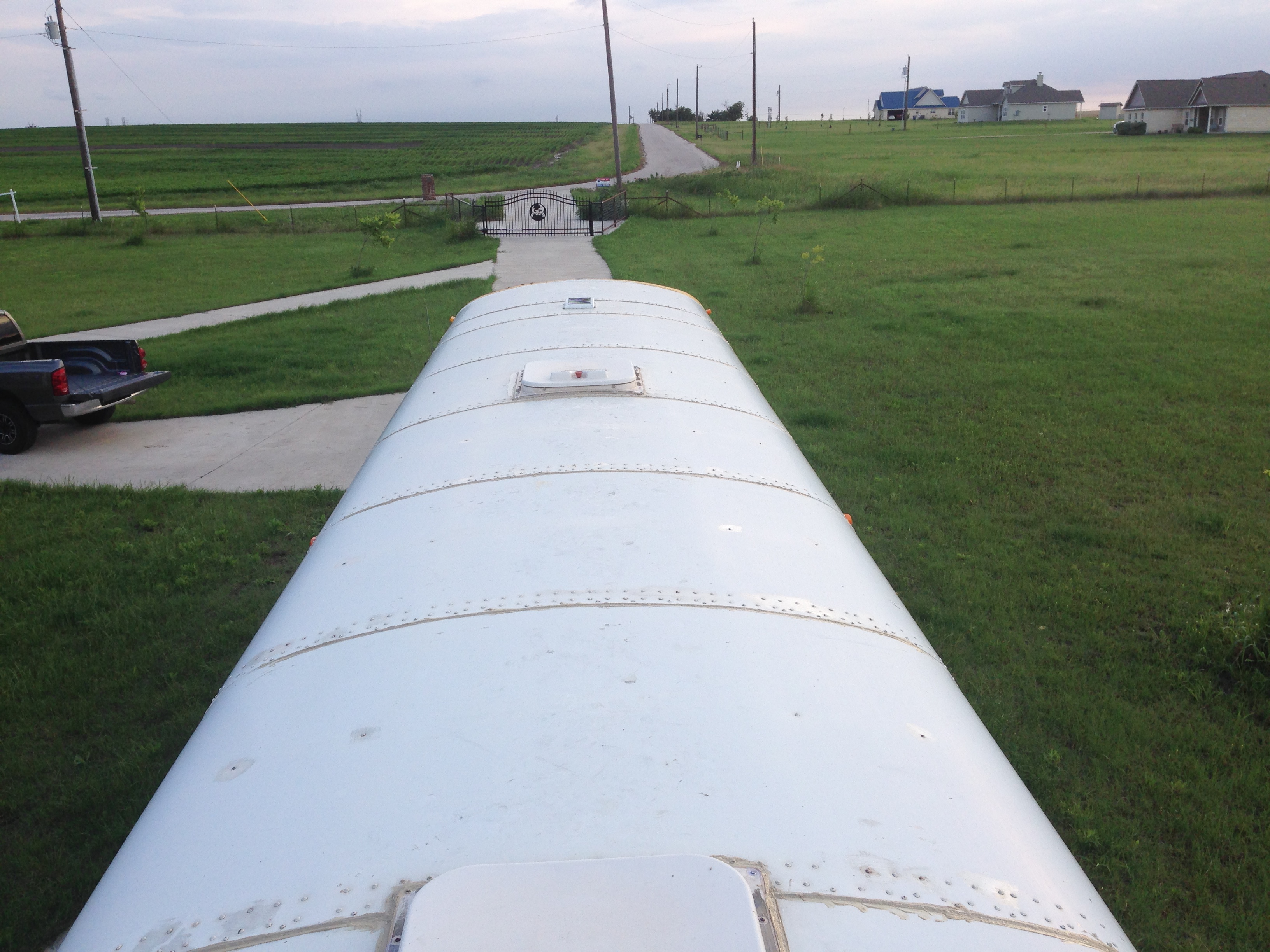 I ended up coming back up to the roof after getting more caulk and sealing all of the rusty screws I found as well as other screws where we saw water coming in at from inside of the bus. We had to stand in the bus while it was pouring rain to really see where everything was coming in at, then we sealed it.