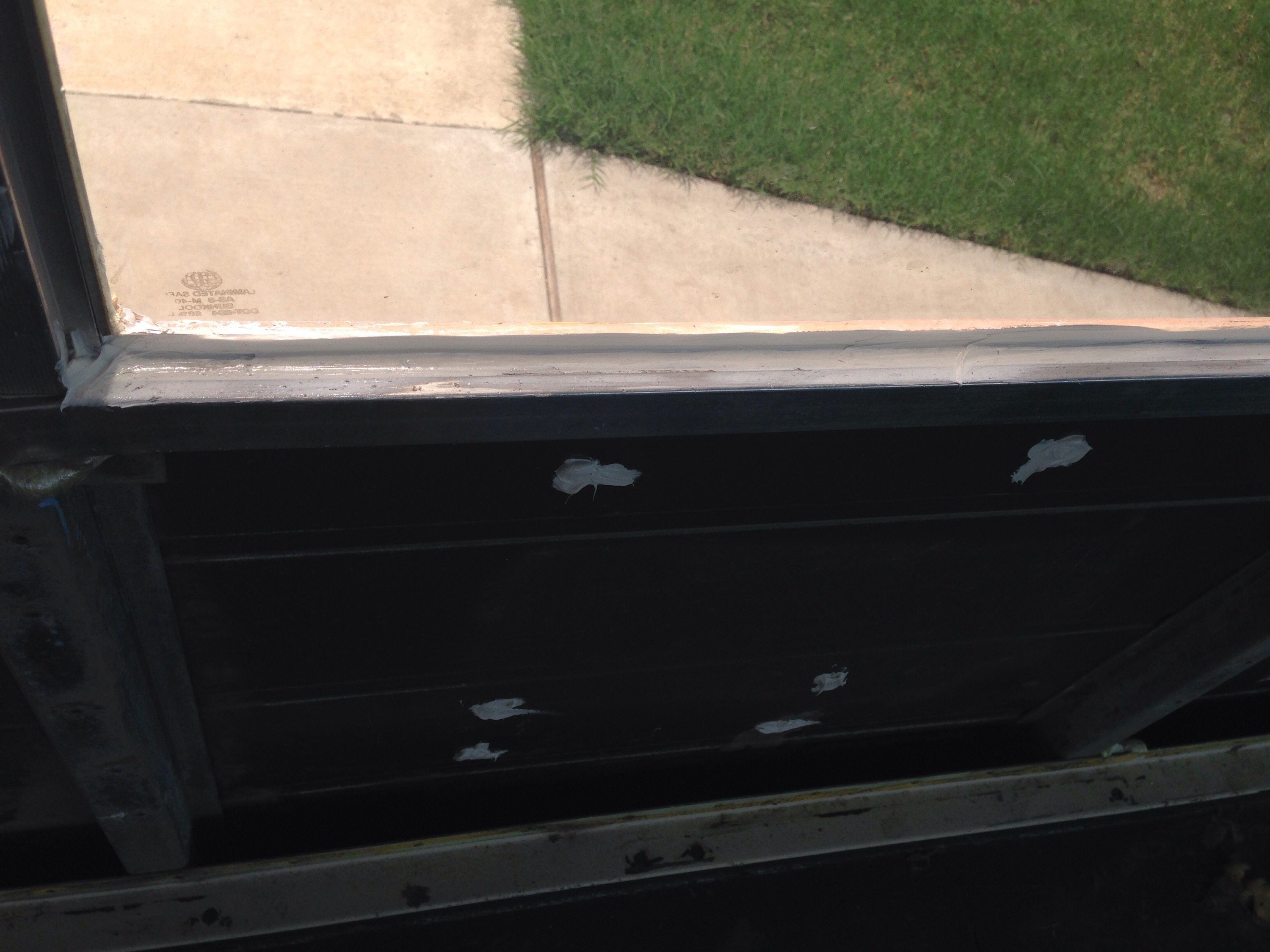 I have decided this never ending seal job of leaks will end this day! We went into the bus on a hard rain day and used chalk to mark all the spots that were leaking. We attempted to spray the bus with the hose to find any leaks, to no avail. So we have been waiting for hard rain storms to hit us the last few weeks (thank God we are not in a drought anymore!) so we can get a realistic view of what kind of leaks we are looking at. Almost all of the leaks came from the seal between the glass and the metal and was collecting in the corners of the windows, dripping down to the floor…eventually will cause rust issues and mildew in the walls if we don’t take care of it. And as our Sgt Crab says, Don’t do the easy wrong over the hard right. And I don’t want issues later *grumble* so here we go!