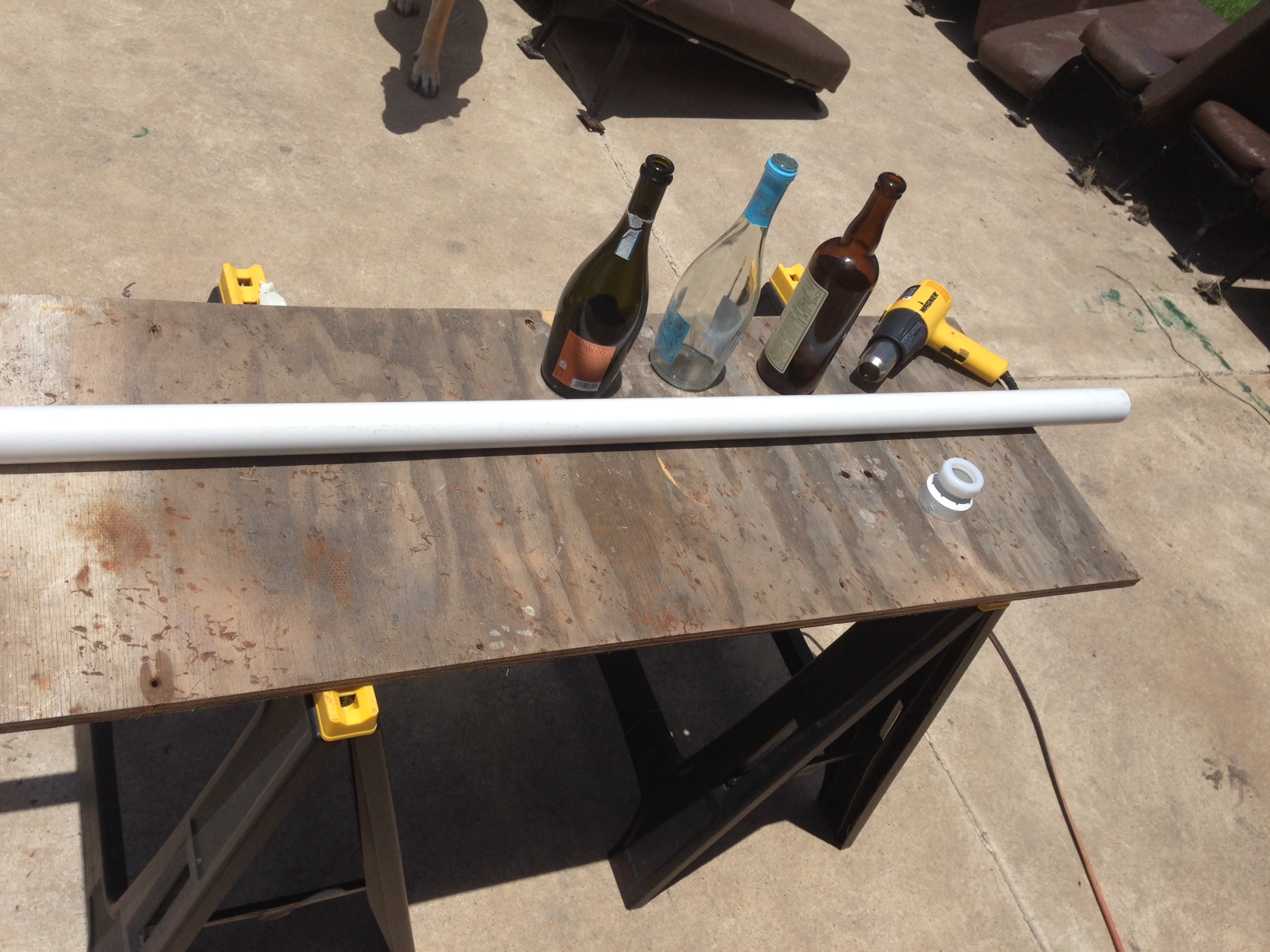 *Don’t forget to add the flare at the bottom to make it really boom! Use a Moscato bottle for this! We tried red wine and a vodka bottle, but the moscato just did better. Heat the bottom like you did for the twists, then place it over the top of the bottle and push down. Then dip it in a bucket of cool water.