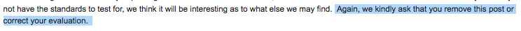 Notice the multiple threats below and need to tell me how incredible their sales are, when all I wanted back in March was a COA and full panel lab results: