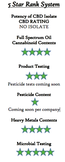 The product’s proof is definitely getting better and shows low levels and passing levels of the outside and naturally occuring contaminants, has a nice array of terpenes, a few cannabinoids (I have see full spectrum oils with more cannabinoids than 2 or 3 from other companies), and a great lab testing their products. I look forward to receiving their pesticide results and adding it to the rank!