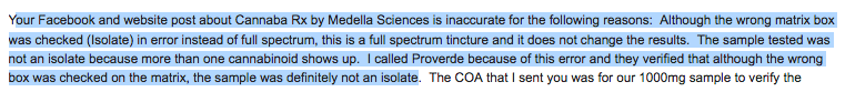 Also, if she is a trained pharmacist, how did it take “uneducated me” to have them be proactive and contact the lab to correct the tests? I don’t have my RPh, yet even I saw the result for isolates had full spectrum properties. They are acting like labs are exclusive information…Don’t let these big companies control the CBD market with their high prices and ridiculous tactics.