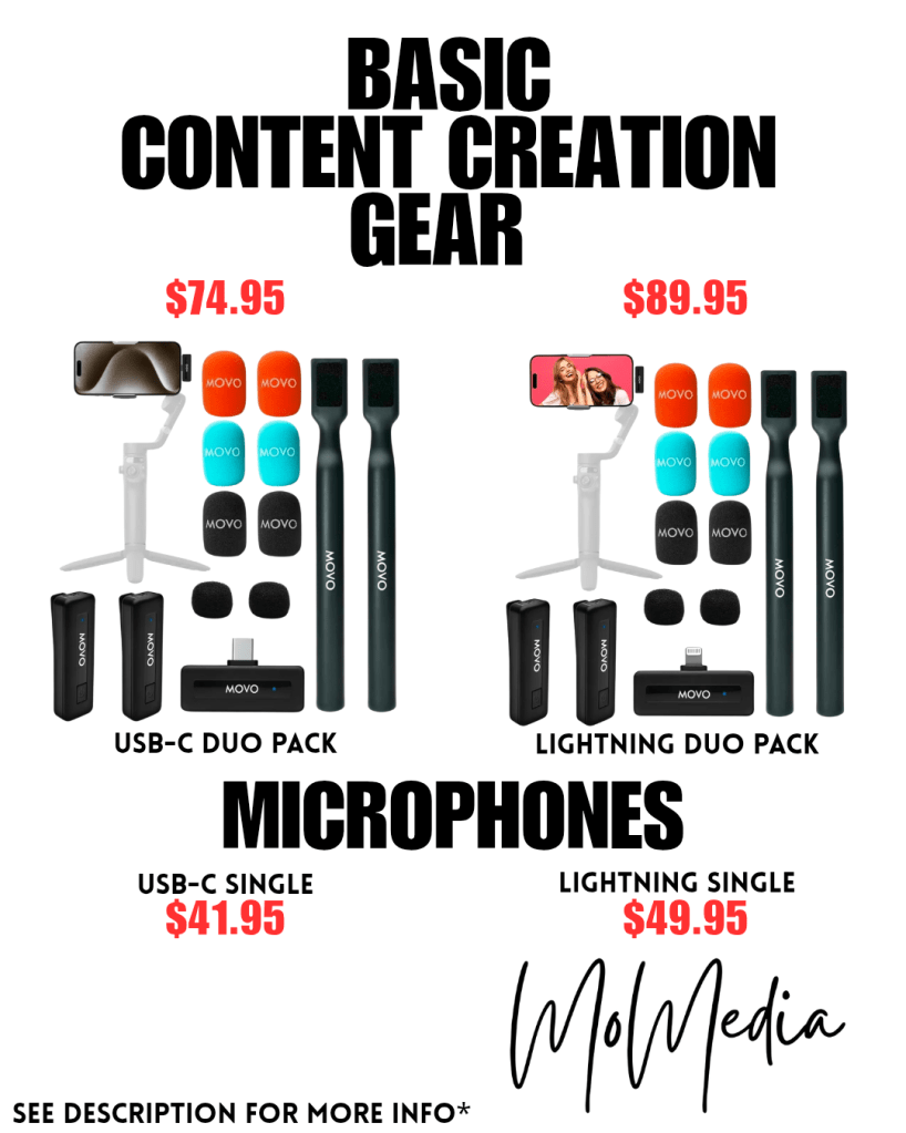 This is a BIG kit. They have a single mic as well in the links provided. MAKE SURE you purchase the right USB/LIGHTNING port for your mic! 2 mics are always better than one. Great for back and forth interviews & when people are nervous on camera, its great when they can have someone else join them and be on camera with them. ![]()